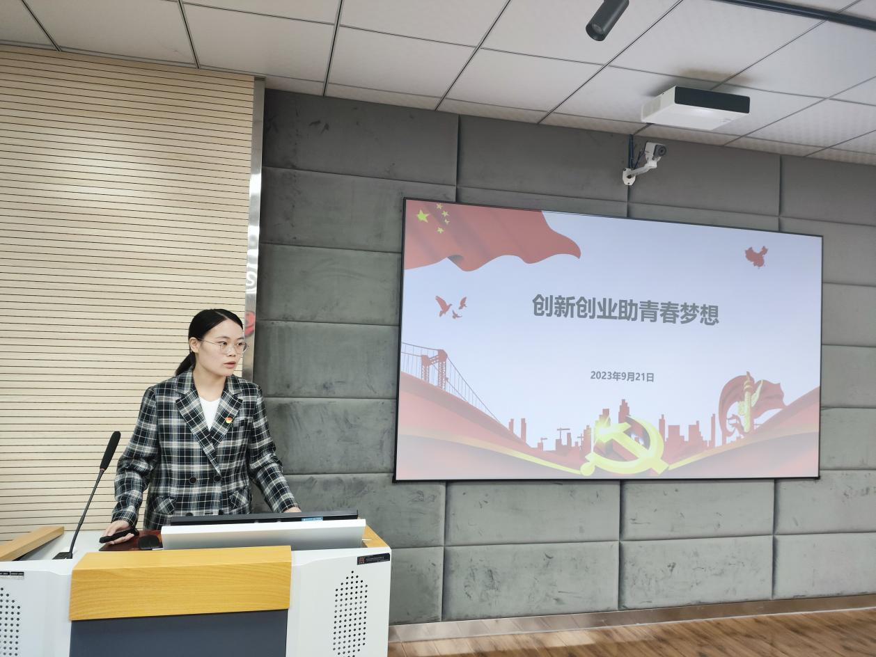 讲座伊始,学院辅导员洪莹莹以《创新创业助青春梦想》为题讲授微党课,解读习近平总书记提出关于创新创业的有关重要论述以及国家出台的相关政策,号召全体同学砥砺前行,把矢志创新创业作为青春奋斗的鲜明标识。