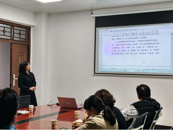 马萍首先领学学校下发的《涵育学风道阻且长用心用情行则将至---一位基层辅导员关于学风建设的实践与思考》,从全员管理责任要更加突出、制度督促作用要更加突出、教师育人作用要更加突出、辅导协同作用要更加突出、氛围育人作用更加突出、榜样建树作用要更加突出等6个方面进行研读和讨论,进一步阐述了学术和教风建设的重要性,亟需以教风建设为突破口,推动学风整体提升,构建“教与学”良性互动生态。