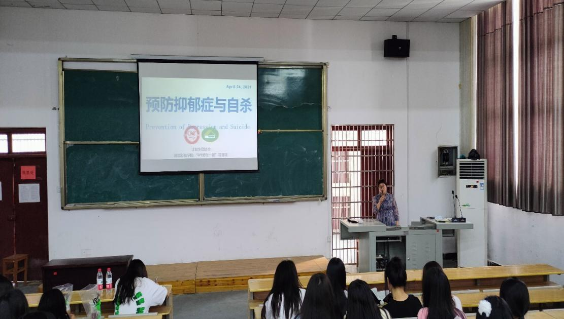 活动开场,项目组指导教师王俊芳老师向大家简单介绍了咸宁市计划生育协会和“WE爱在一起”项目组。紧接着王俊芳老师针对近几年新冠疫情产生的问题进行分析,指出部分在校学生因封城、封校等多种因素,日常生活、学习节奏被打乱,加之面对升学压力产生的无措感,导致部分同学出现焦虑、抑郁的情绪。在此种形势下,面对抑郁症患病风险显著增高的情况,志愿者李钦瑀为在场同学带来了一场关于“预防抑郁症与自杀”的主题宣讲,从如何疏解压力,将负面情绪转化为前进的动力等多方面为大家讲解如何预防、治疗抑郁症,至此本次宣讲活动正式开始。
